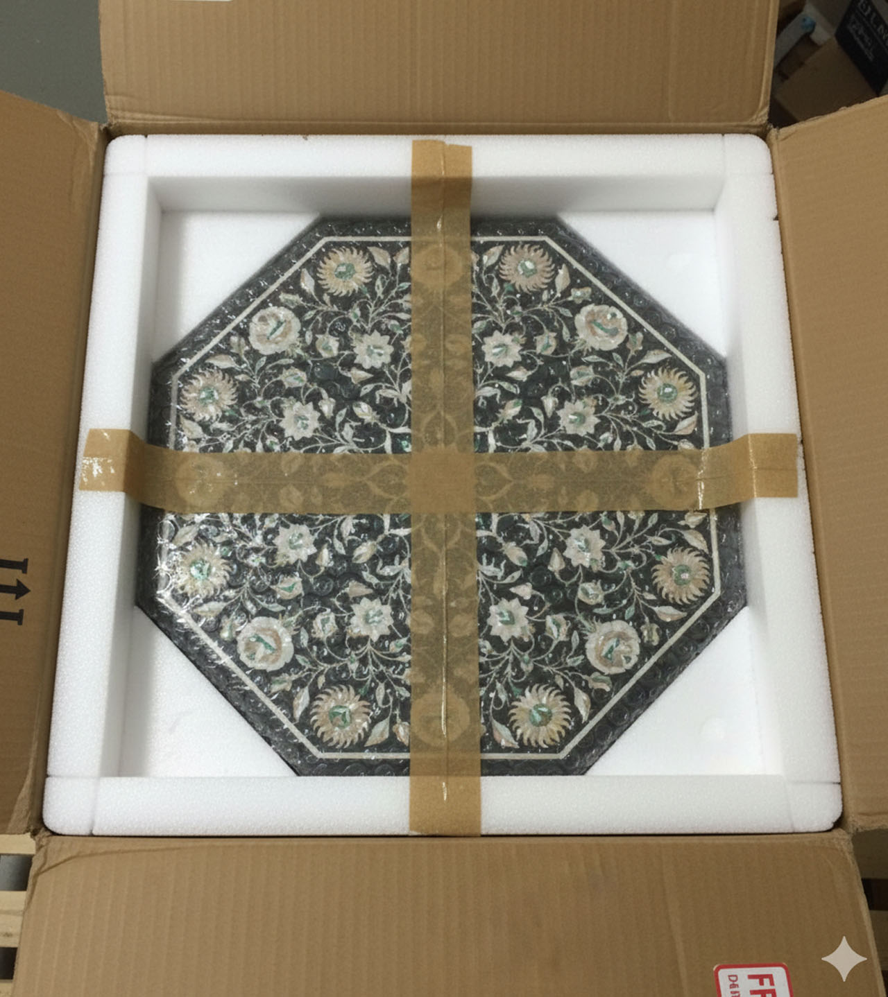 - Craftsmanship: Hand-carved and inlaid by expert artisans in India